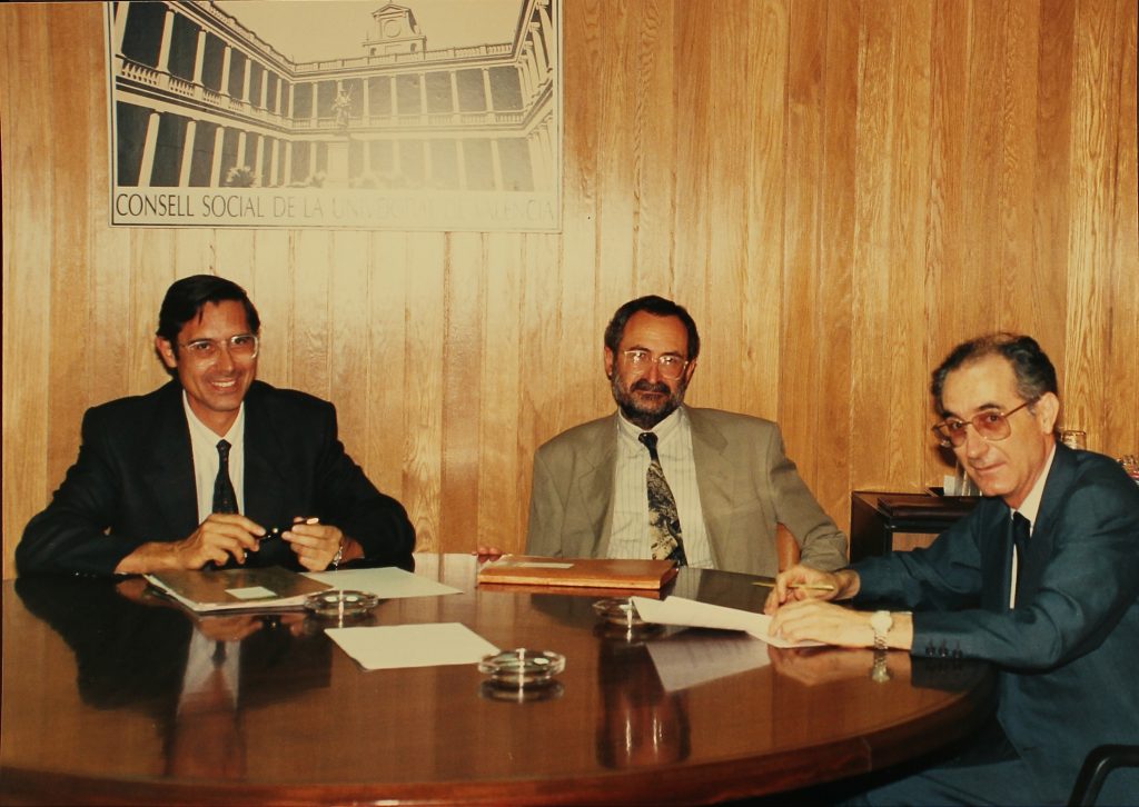 Sin embargo, desde el Consell Social de la Universitat de València se dio un paso histórico. De manera absolutamente pionera, en septiembre de 1987, apenas un año después de la incorporación de España a la Unión Europea, se constituyó la Asociación para el Desarrollo Empresarial y la Innovación Tecnológica (ADEIT). Dos años después, se transformaría en la actual Fundación Universidad-Empresa de la Universitat de València, que ha mantenido en su nomenclatura las siglas de la asociación inicial.