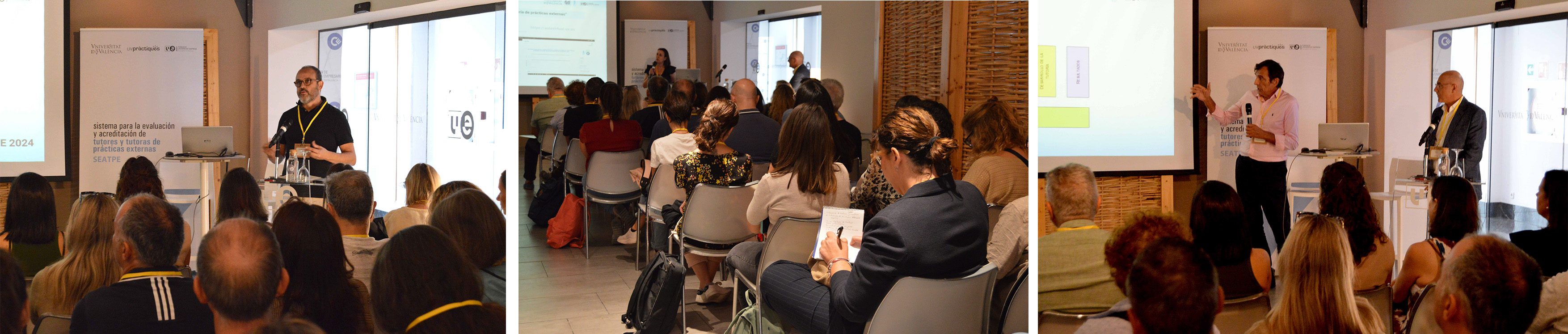 En la inauguració de SEATPE van participar Jesús Soret Medel, delegat de la rectora per a ocupació i pràctiques; Miguel Ángel Barberá Gregori, responsable del departament de Pràctiques en Empresa d’ADEIT, i Alfredo Pérez Boullosa, professor de la Facultat de Filosofia i Ciències de l’Educació, van fer un recorregut a totes les qüestions que s’abordaran al llarg de les 50 hores de duració del programa. A més, Begoña Clavel  Arroitia, professora de la Facultat de Filologia i Ciències de l’Educació, va presentar l’apartat relatiu a la ‘Docència i Gestió de la Tutoria de Pràctiques Externes’ i posteriorment Elvira Cerver Romero, vicedegana d’Ocupabilitat i Pràctiques Externes de la Facultat d’Economia, va posar el focus a presentar a les persones assistents com plantejarien el ‘Taller d’Elaboració d’un Projecte de Tutoria de Pràctiques Externes’ d’aquesta edició de SEATPE. Finalment, Yolanda Montoro, subdirectora del departament de Pràctiques d’ADEIT, es va centrar en la metodologia i a l’aula virtual que utilitzaran.